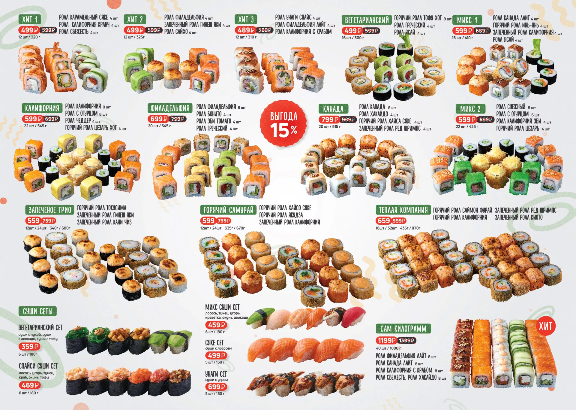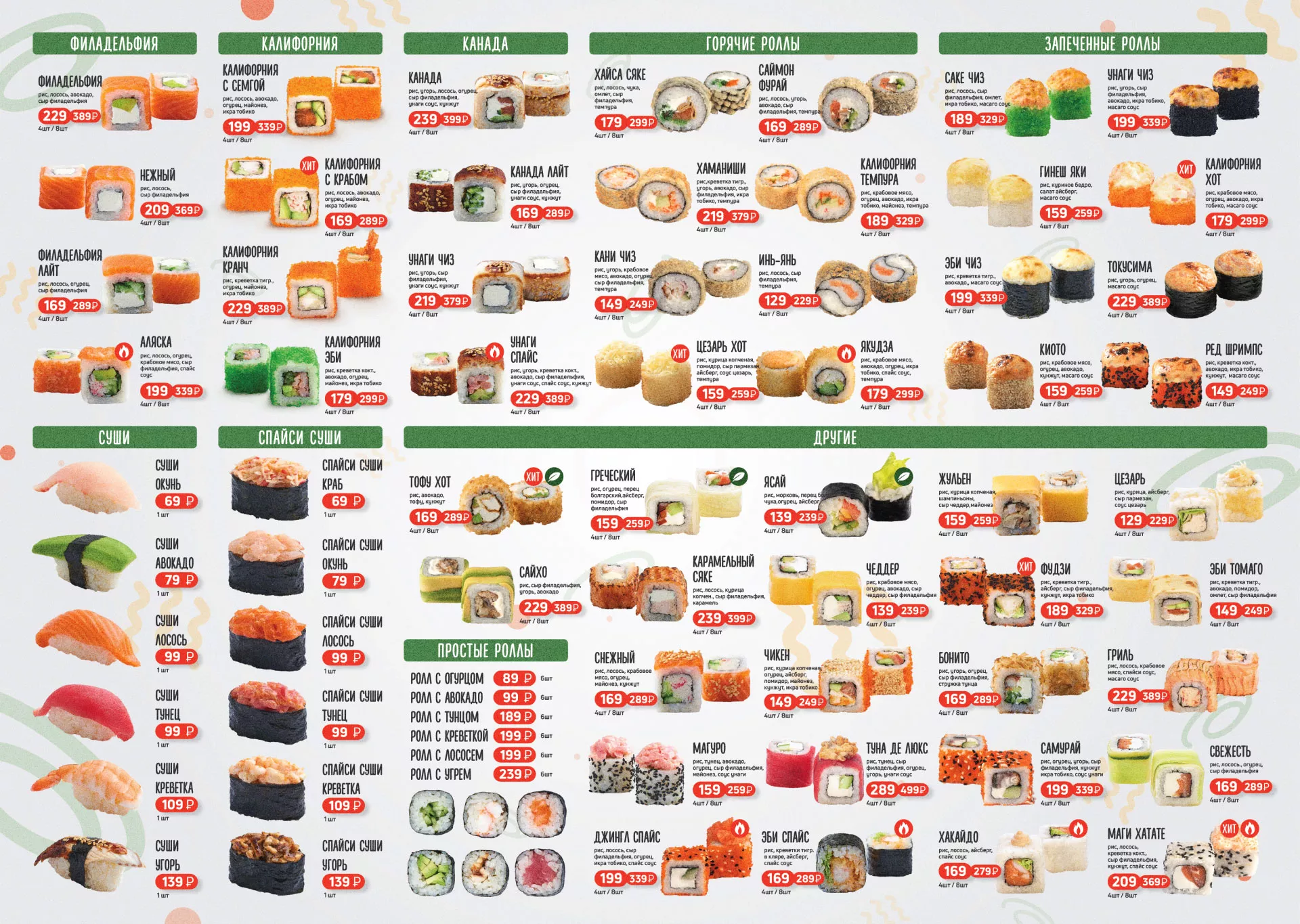 Оформление меню суши-бара «Roll Wok Club» в Калининске