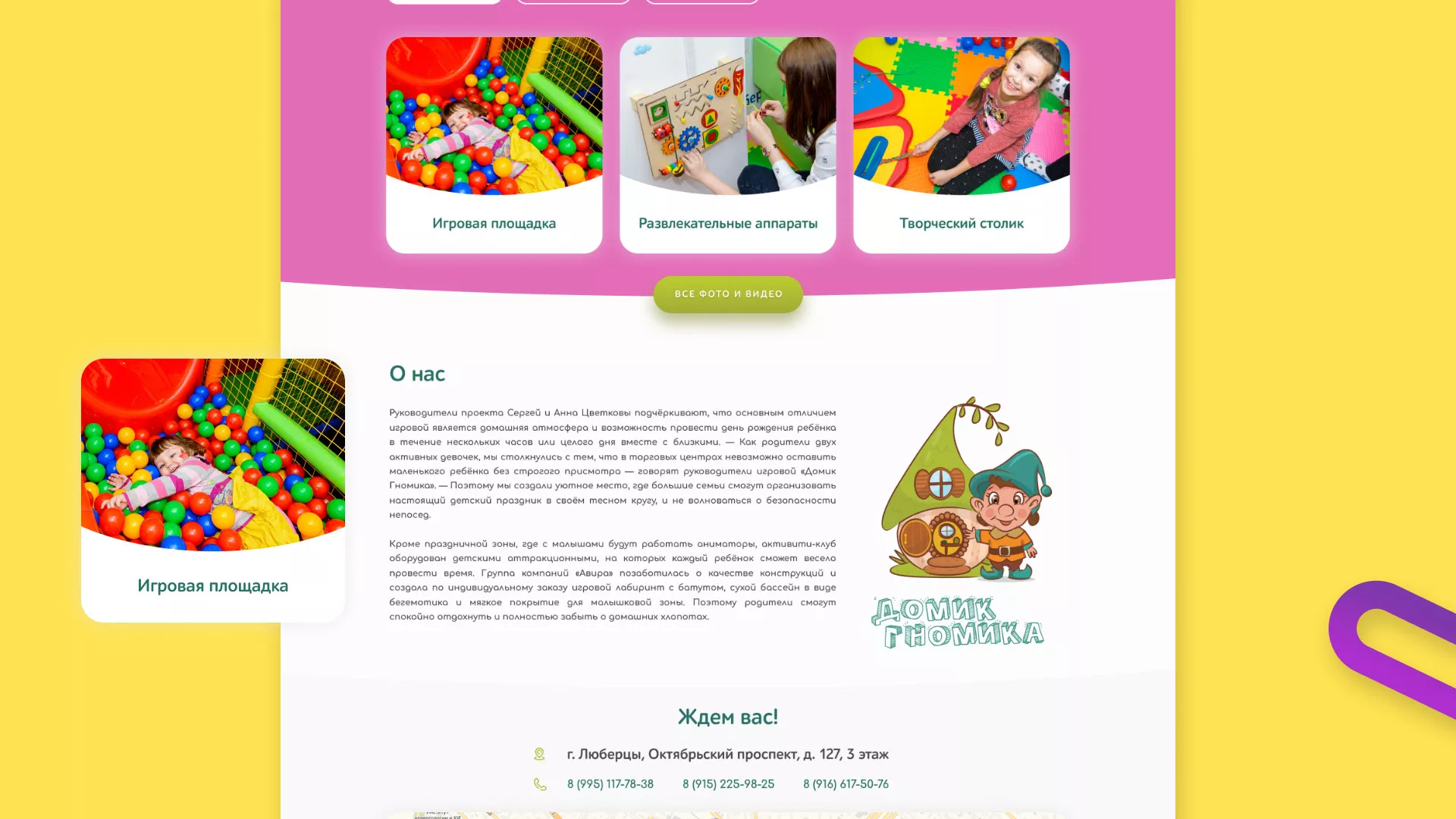 — Как родители двух активных девочек, мы столкнулись с тем, что в торговых центрах невозможно оставить маленького ребёнка без строгого присмотра — говорят руководители игровой «Домик Гномика» в Калининске.
