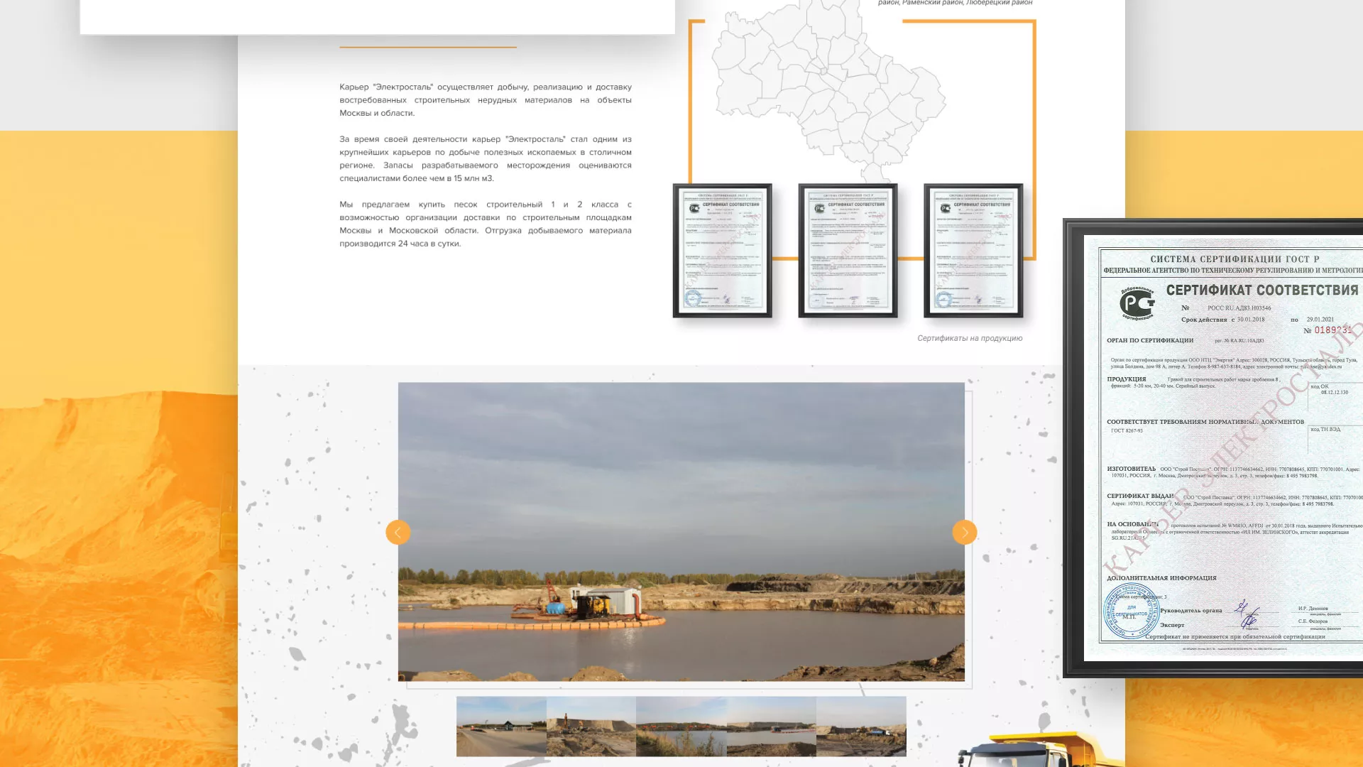 Разработка сайта по продаже нерудных материалов «Карьер» в Калининске