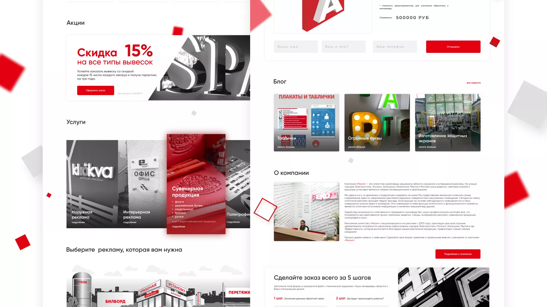 Стаж рекламно-производственной компании «РЕКОМ» — более 15 лет. Компания оказывает полный спектр услуг в Калининске по интерьерной и наружной рекламе, а также по широкоформатной печати и полиграфии.