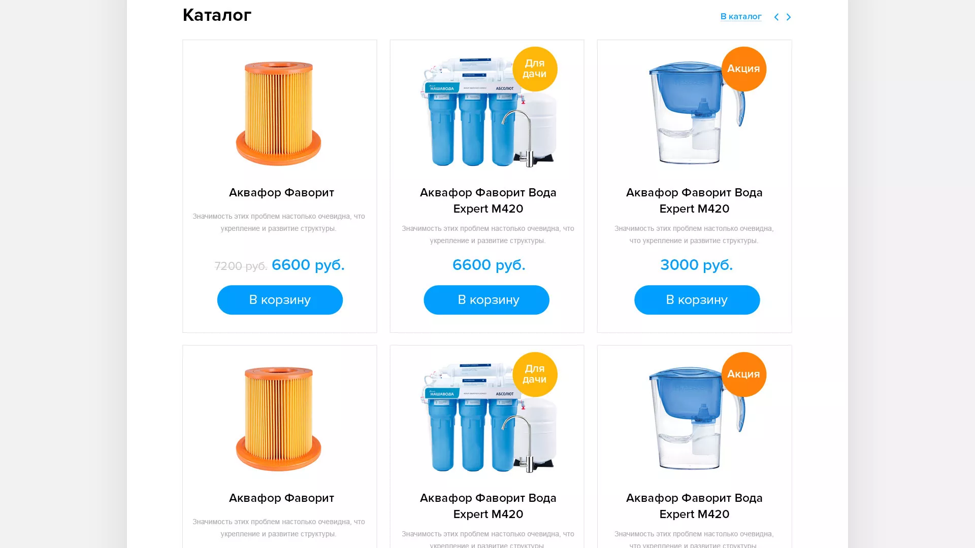 Работать с компанией «Мультзавод» удобно и легко, поэтому, если Вам требуется создание аналогичного сайта по продаже и установке фильтров очистных сооружений в Калининске, мы предложим Вам действительно выгодные цены и удобные условия сотрудничества. Мы обещаем, что вложенные в разработку сайта деньги окупятся и Вы получите современный рабочий интернет-магазин!