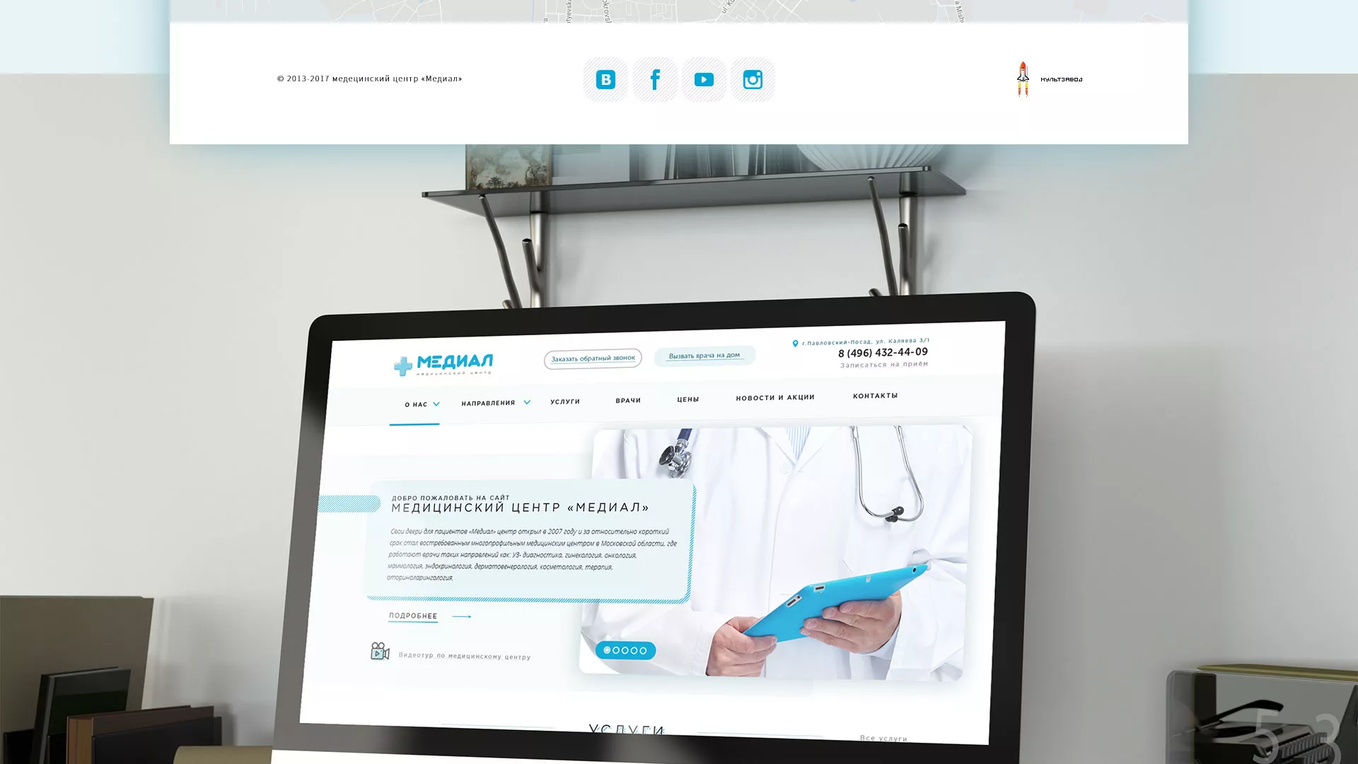 Сайт медцентра «Медиал» в Калининске является «лицом» учреждения, презентует его с лучших сторон, доступно информирует об оказываемых услугах. Он легкий в навигации и использовании. На таком сайте должно быть просто узнать о врачах, услугах, записаться на прием всем возрастным категориям, от 16 до 60 лет. Это должен быть современный, функциональный и эстетически приятный сайт. В рамках создания сайта для медицинского центра компания «Мультзавод» в Калининске ориентируется именно на эту задачу.