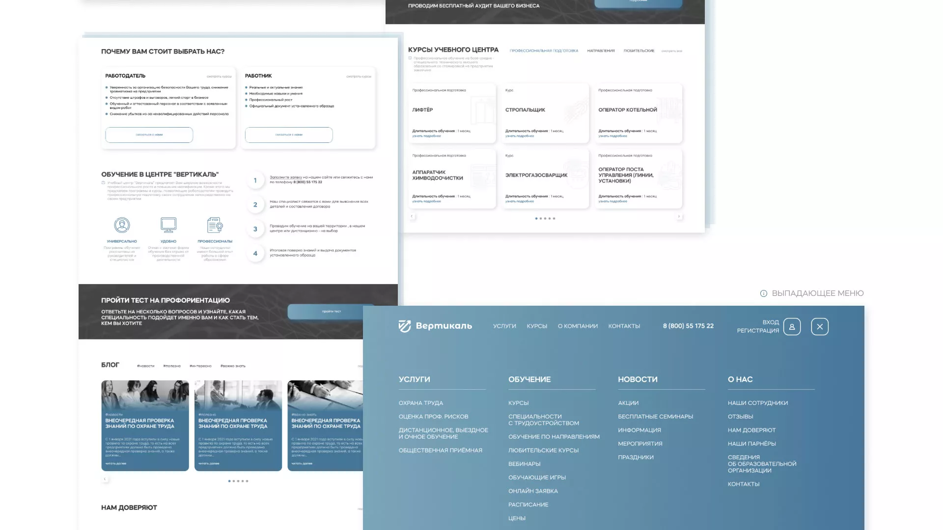 Создание сайта учебного центра «Вертикаль» в Калининске